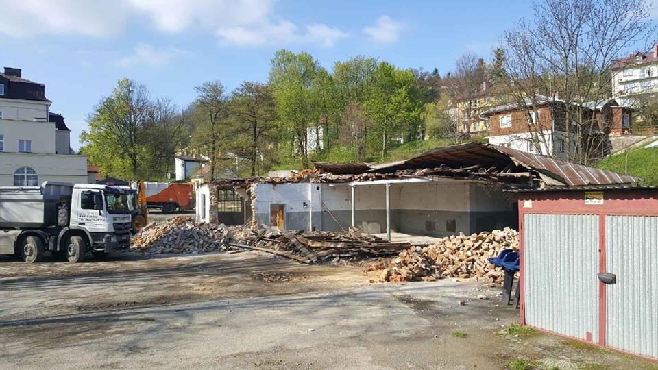 z którego obecnie chętnie korzystają przyjezdni. Dodatkową powierzchnię postojową uzyskano również dzięki wyburzeniu starych garaży usytuowanych naprzeciwko Urzędu Gminy. Zwolnione w ten sposób miejsce doraźnie wykorzystane zostało jako baza materiałów budowlanych na potrzeby prowadzonych inwestycji drogowych, jednakże w drugiej połowie 2017 roku ruszy w tym miejscu budowa profesjonalnego parkingu oraz przystanku autobusowego.