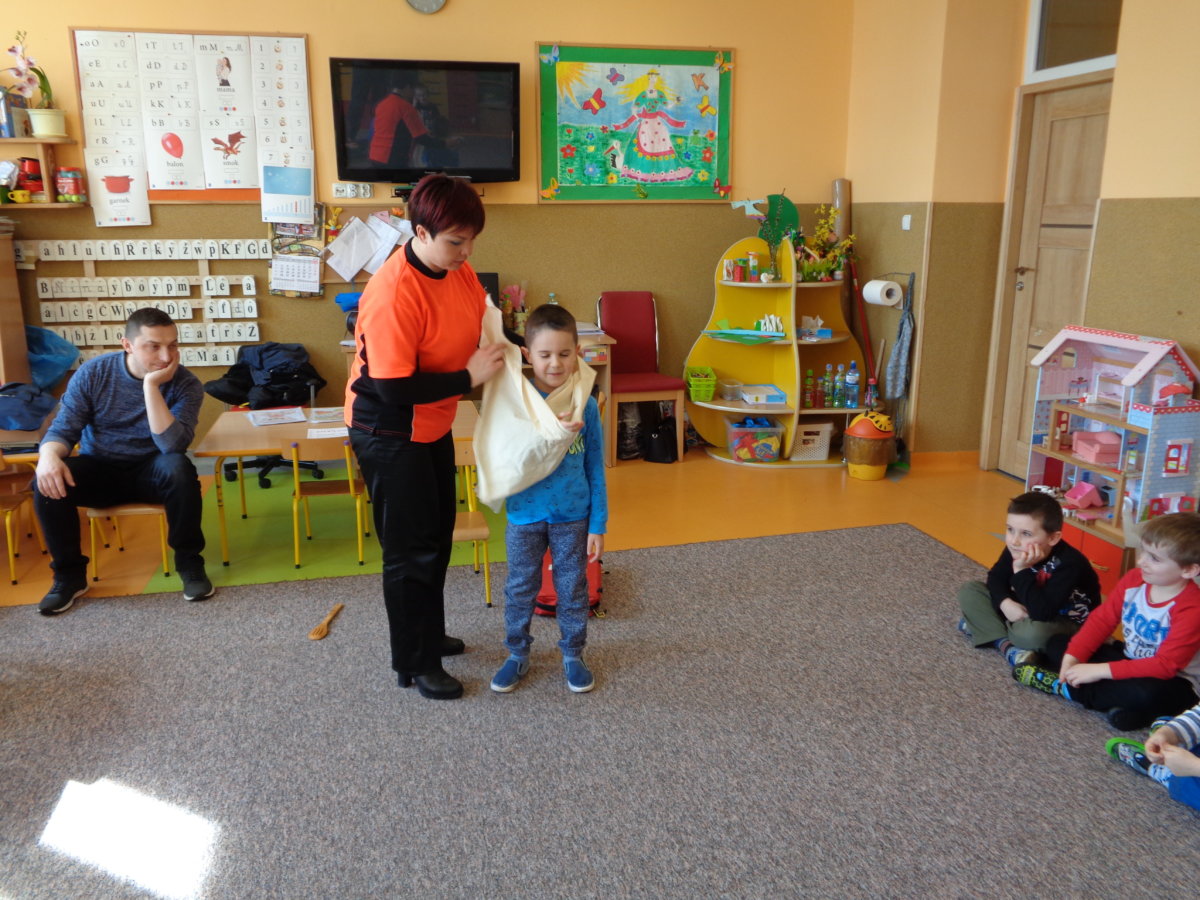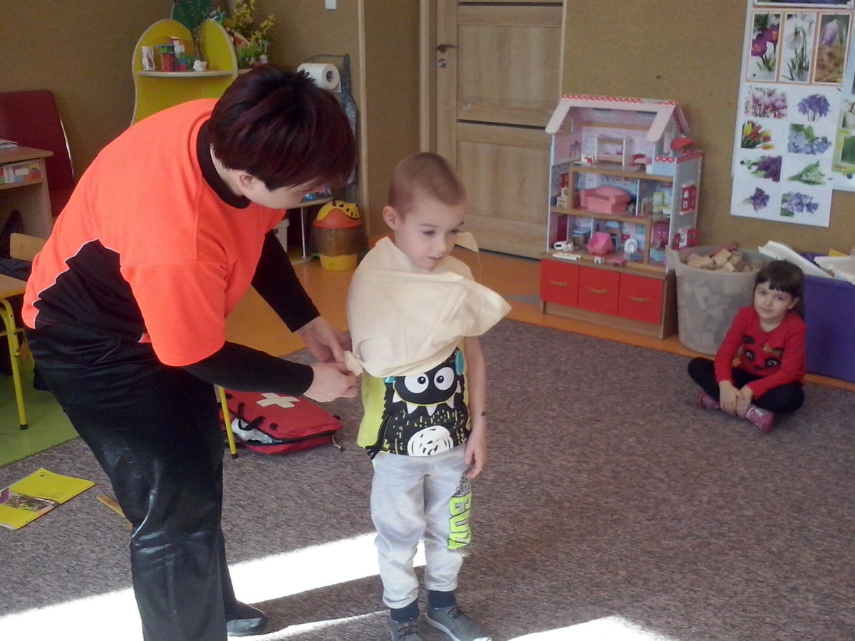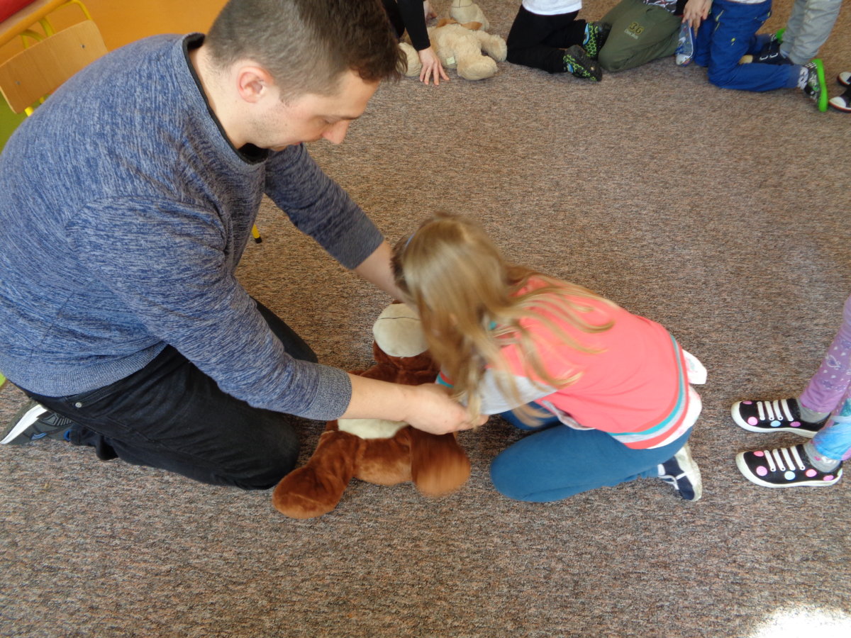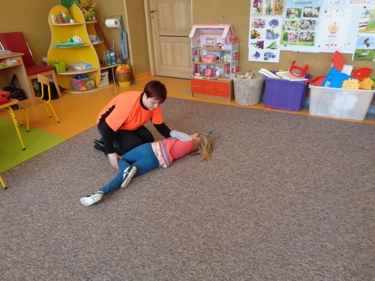 Przedszkolaki wiedzą, gdzie zadzwonić kiedy ktoś potrzebuje pomocy, w sytuacji zagrożenia życia. Jak udzielić pierwszej pomocy dowiedziały się od ratownika medycznego – wysłuchały prelekcji z instruktażem. Każdy otrzymał dyplom BARDZO DZIELNEGO RATOWNIKA.