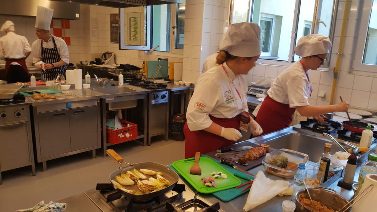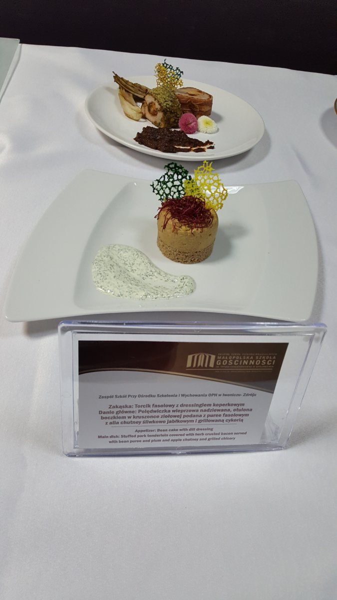 Zadanie konkursowe polegało na przygotowaniu 4 zakąsek zimnych lub gorących oraz 4 porcji dania zasadniczego. Uczennice przygotowały następujące potrawy: