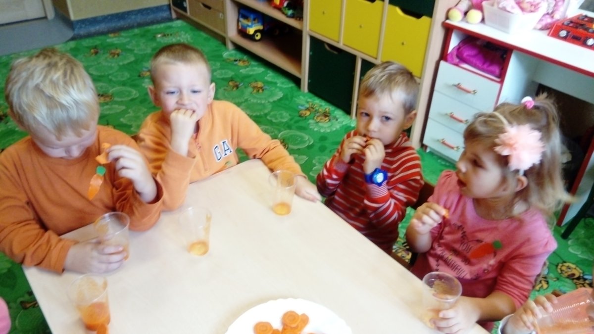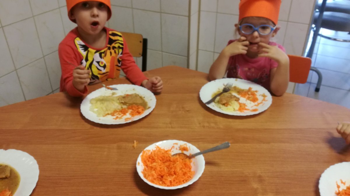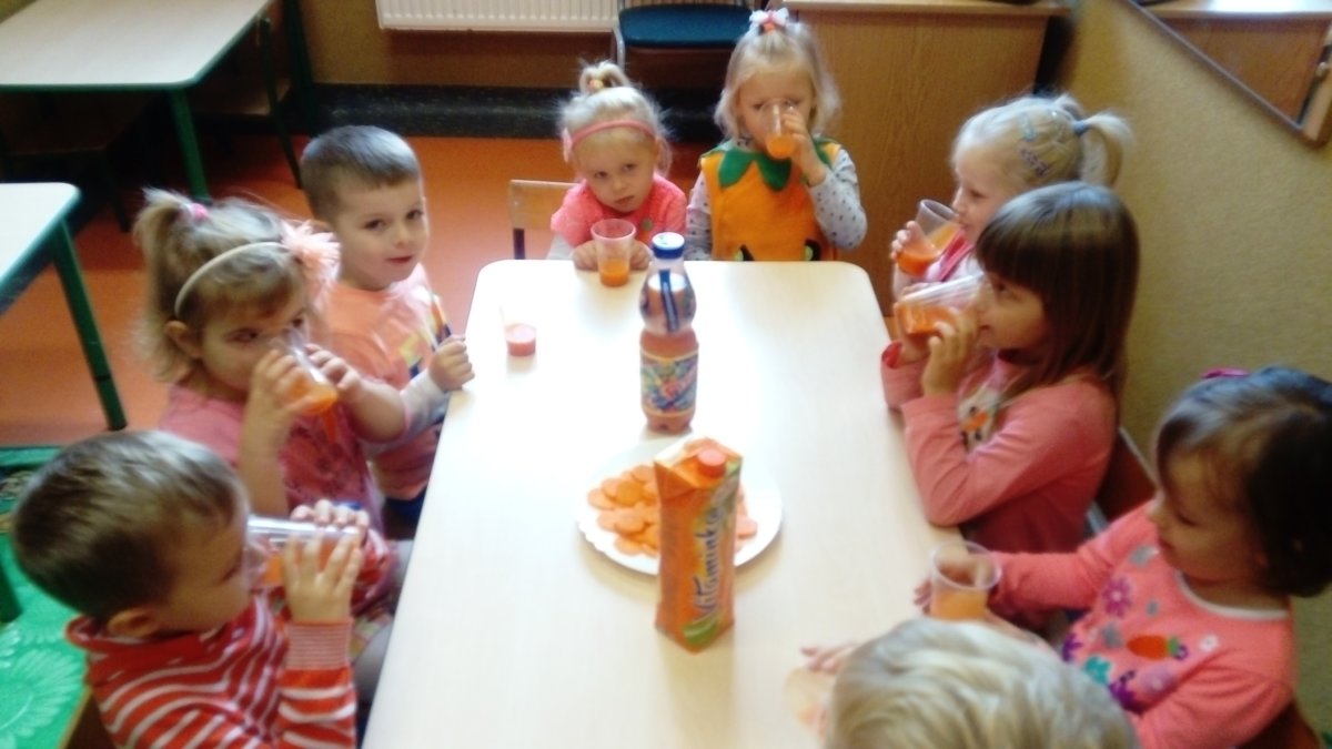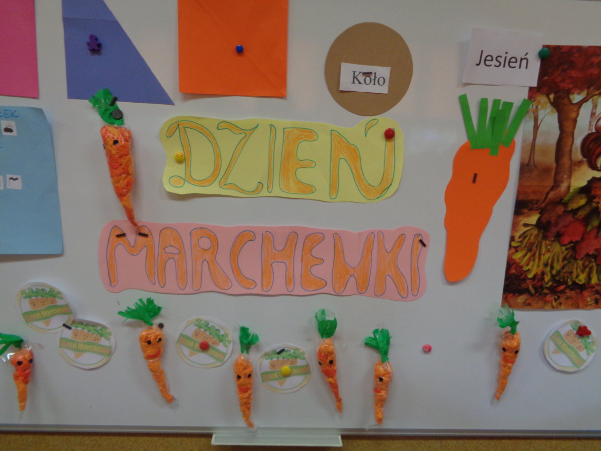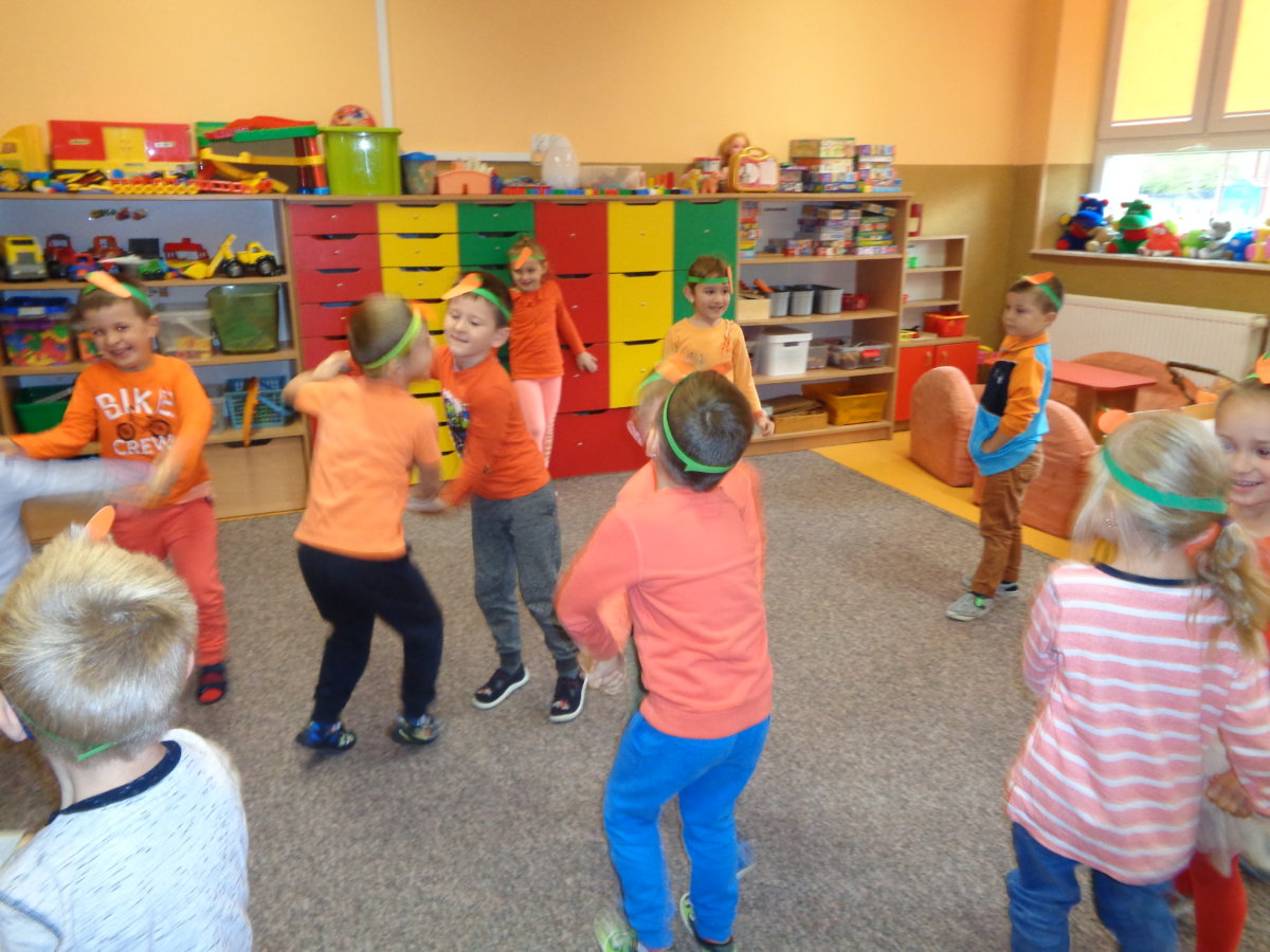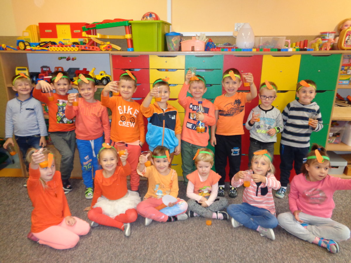 „Na marchewki urodziny wszystkie zeszły się jarzyny a marchewka gości wita o zdrowie grzecznie pyta”. To właśnie marchewka jest warzywem, które zawiera niezbędne dla zdrowia witaminy. Aby zachęcić dzieci do spożywania marchewki zorganizowaliśmy w przedszkolu Urodziny Marchewki. W tym dniu dzieci ubrały się na pomarańczowo, każde otrzymało opaskę z tym warzywem. Przedszkolaki brały udział w zabawach muzycznych, ruchowych i plastycznych z marchewką w roli głównej. Było picie soku, jedzenie surówki i chrupanie surowej marchewki. Po takiej dawce witamin, śmiechu i zabawy nasze przedszkolaki będą na pewno zdrowe.