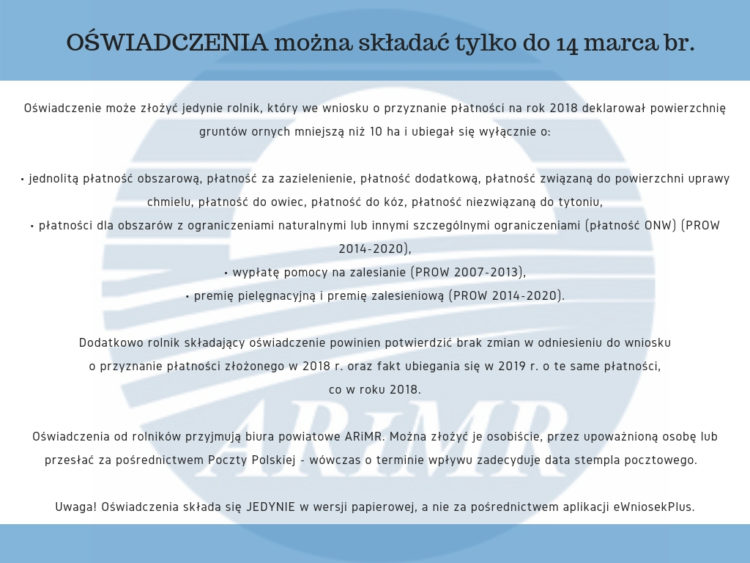 OŚWIADCZENIE POTWIERDZAJĄCE BRAK ZMIAN W 2019 ROKU W ODNIESIENIU DO WNIOSKU O PRZYZNANIE PŁATNOŚCI ZŁOŻONEGO W ROKU 2018
