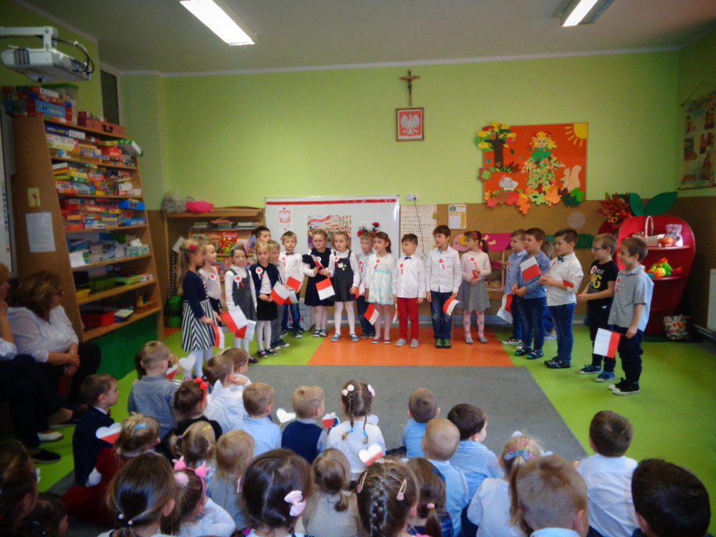 Ostatnio w naszym przedszkolu odbył się Uroczysty Poranek z okazji obchodów Narodowego Święta Niepodległości. Każda z grup zaprezentowała swój program artystyczny a spotkanie zakończyliśmy wspólnym odśpiewaniem hymnu narodowego o godz. 11:11.