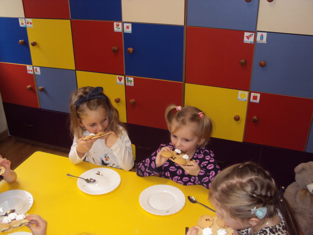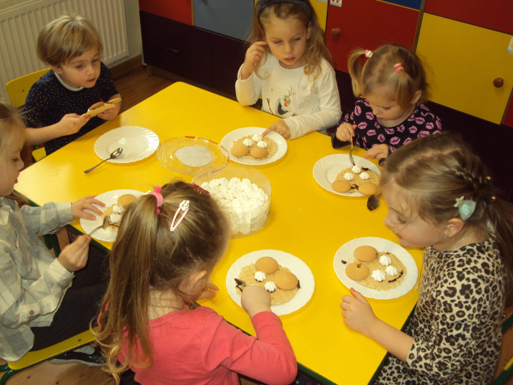 Przedszkolaki zostały zaproszone do wspólnej zabawy w misiowej krainie. Poznały historię Święta Pluszowego Misia, wspólnie bawiły się przy piosenkach: „ Jadą, jadą misie”, „Pluszowy miś”. Dla dzieci w tym dniu we wszystkich grupach przygotowano wiele atrakcji: zabawy ruchowe, plastyczne, konkursy, quizy, misiowe tańce. Starszaki bawiły się w kodowanie na dywanie z misiem a średniaki wykonały „słodkiego” misia z wafelków i czekolady. To był naprawdę niezwykły dzień pełen wrażeń.