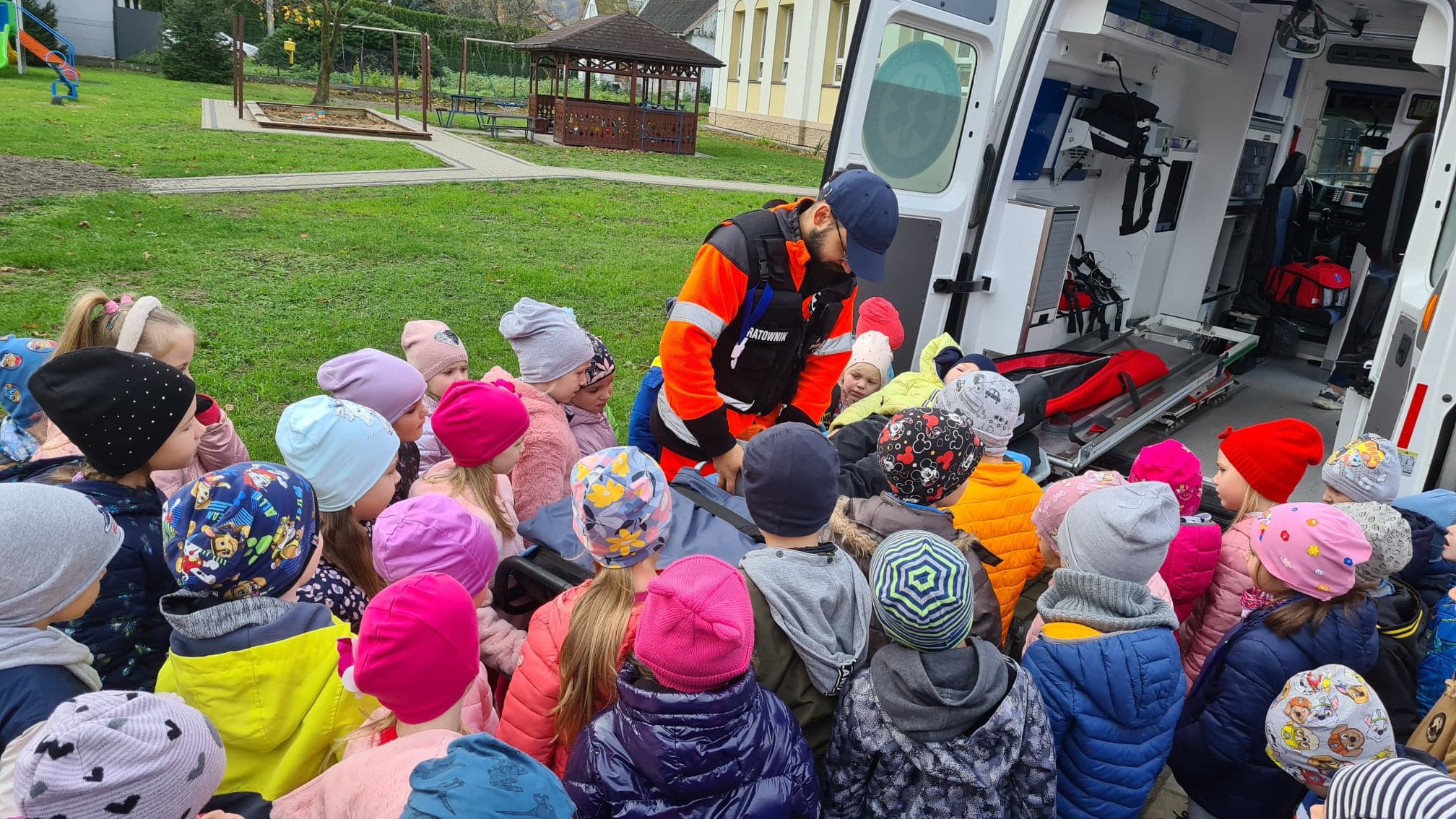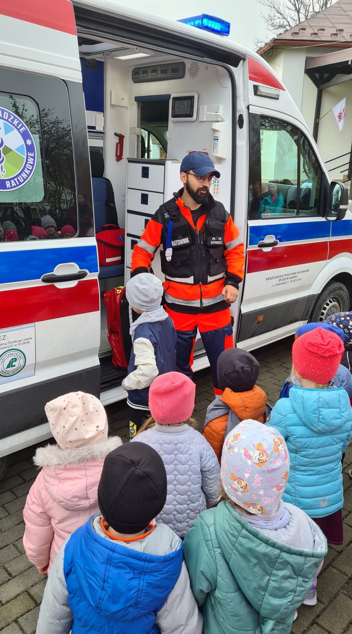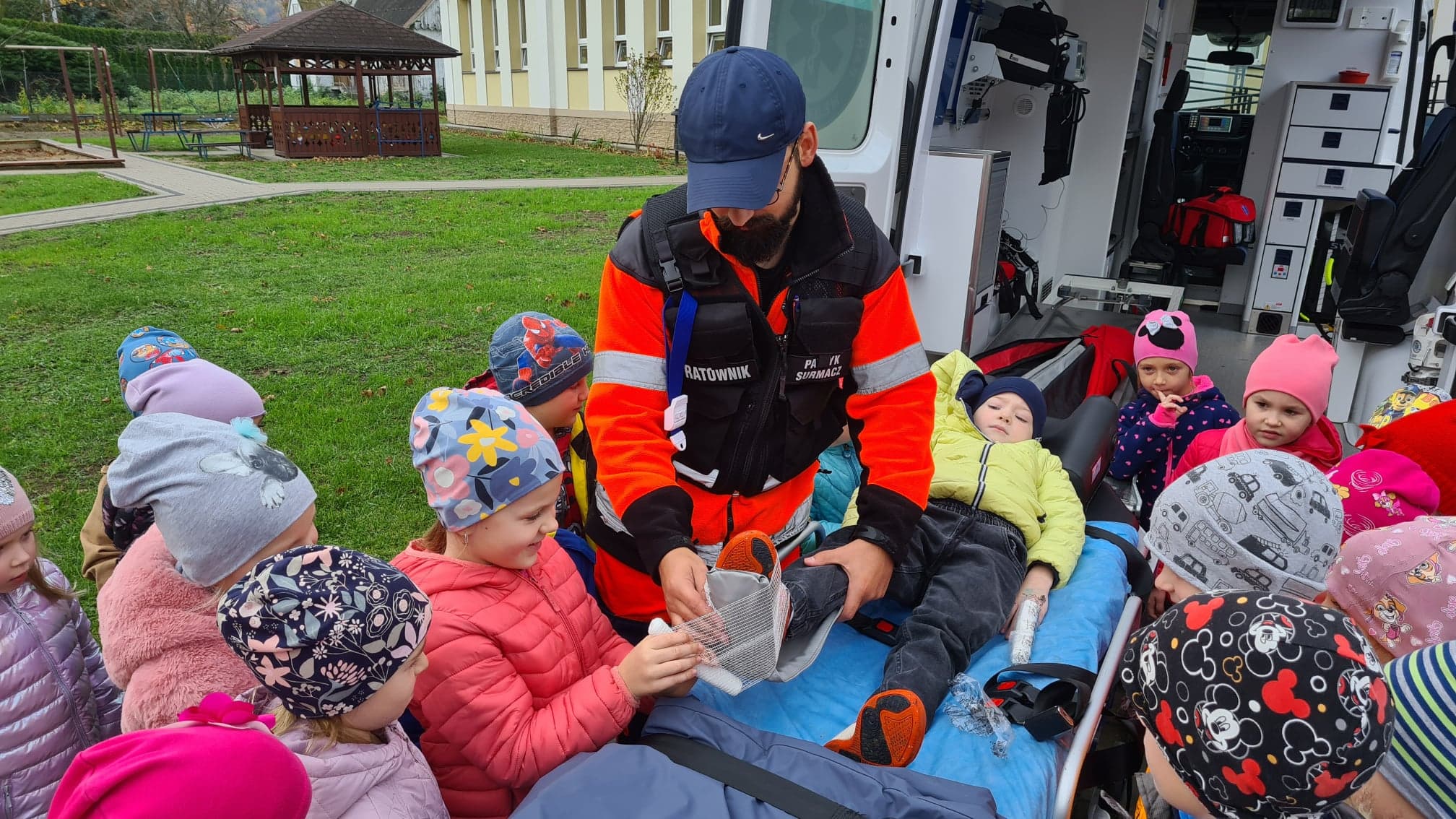 25 października do naszego przedszkola zawitał specjalny, bardzo ważny gość – Pan Patryk, ratownik medyczny z Bieszczadzkiego Pogotowia Ratunkowego.