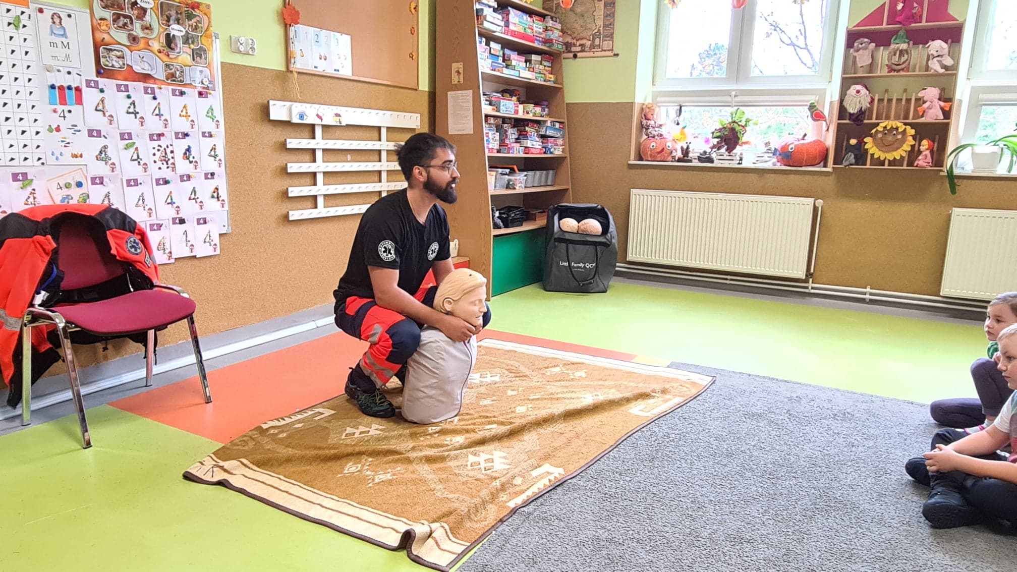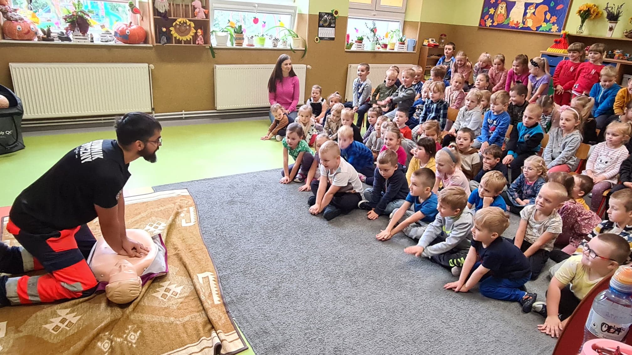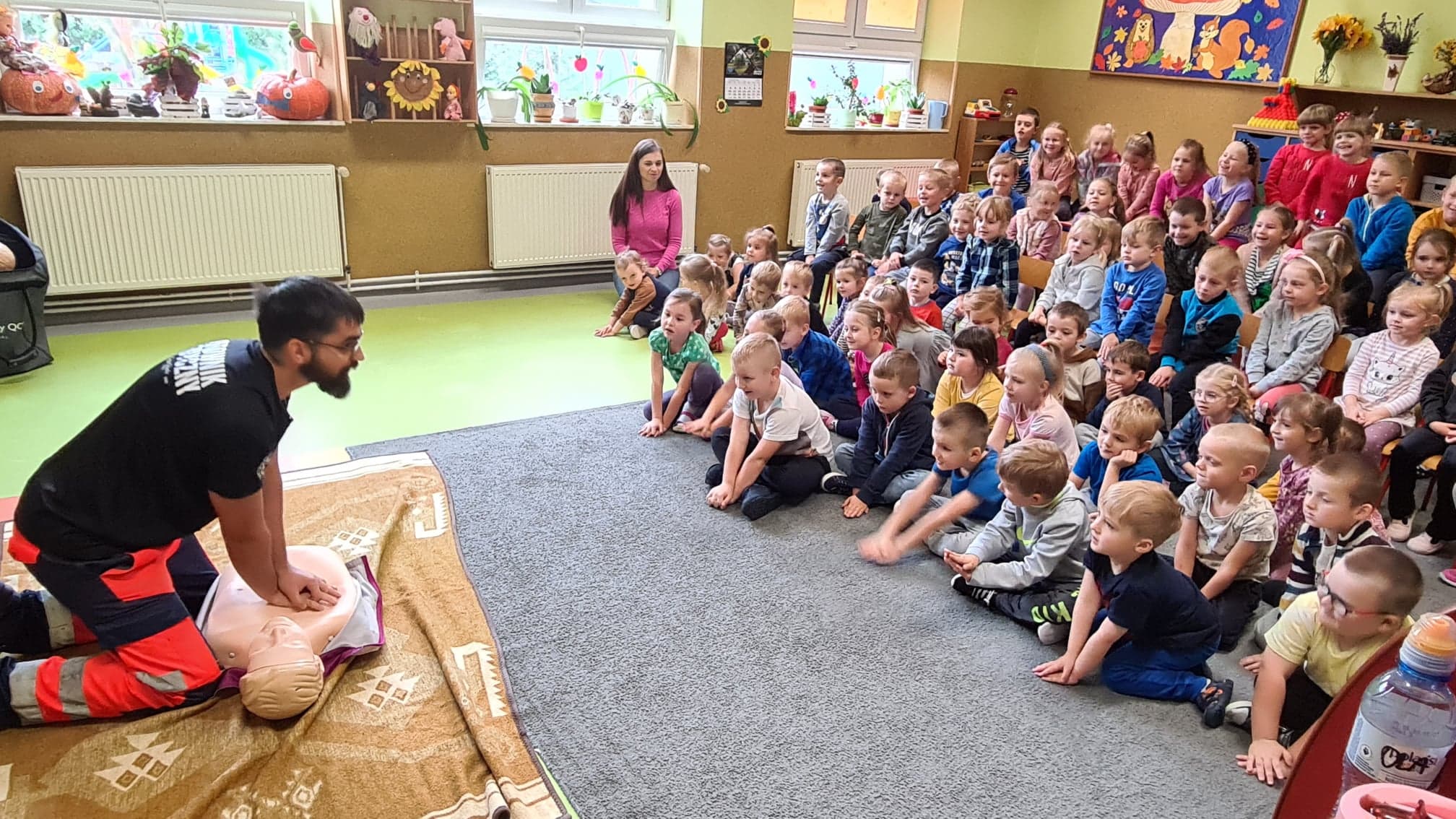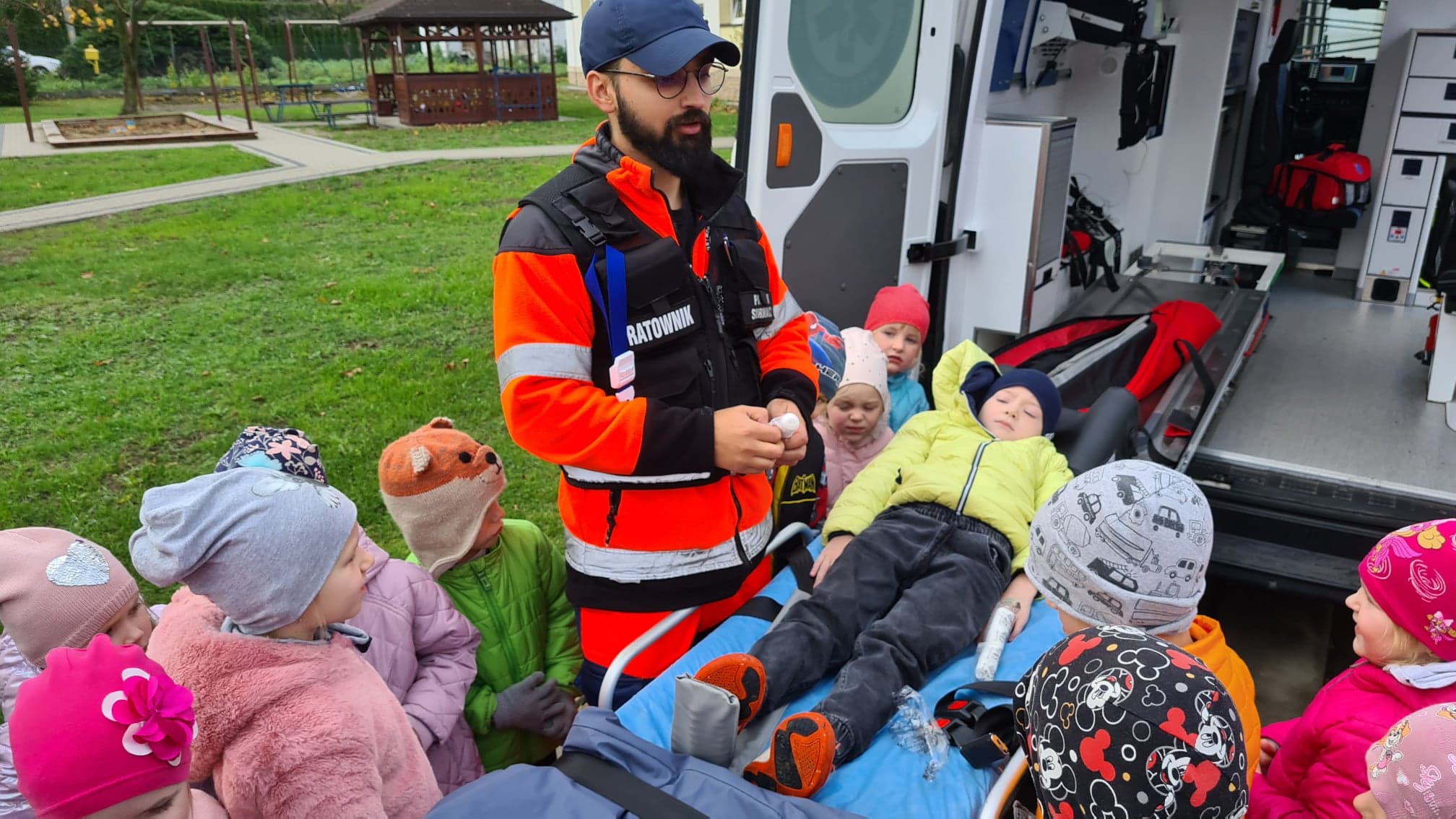 25 października do naszego przedszkola zawitał specjalny, bardzo ważny gość – Pan Patryk, ratownik medyczny z Bieszczadzkiego Pogotowia Ratunkowego.