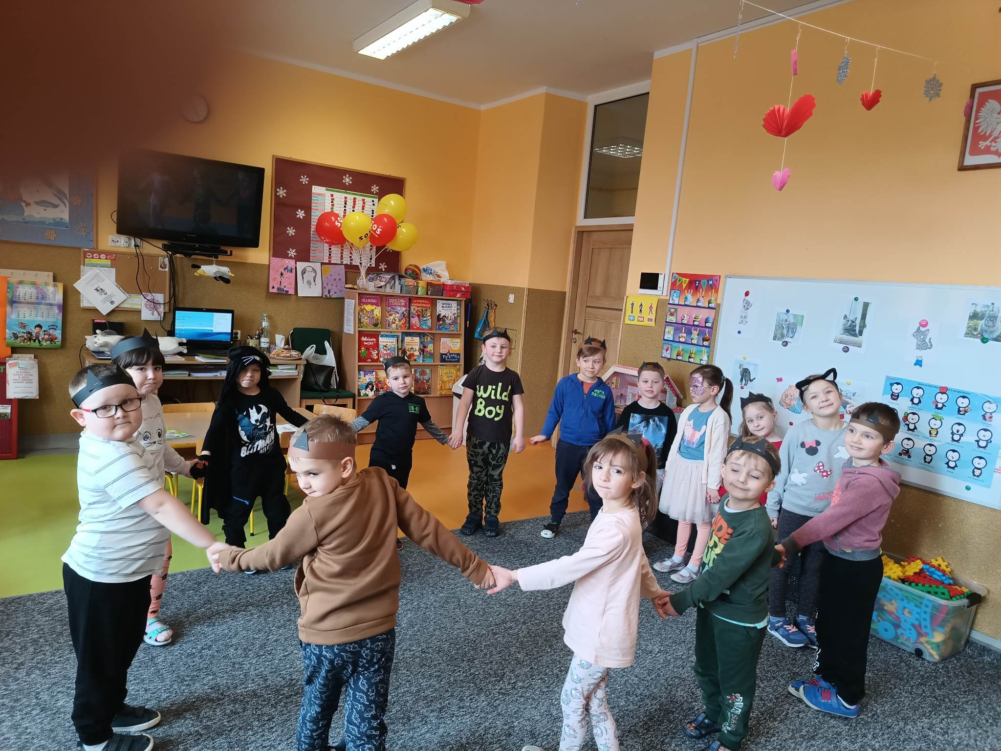 Tego dnia dzieci postarały jak najbardziej upodobnić się do czworonożnych przyjaciół poprzez pomalowane twarze, opaski – kocie uszy oraz kocie stroje.