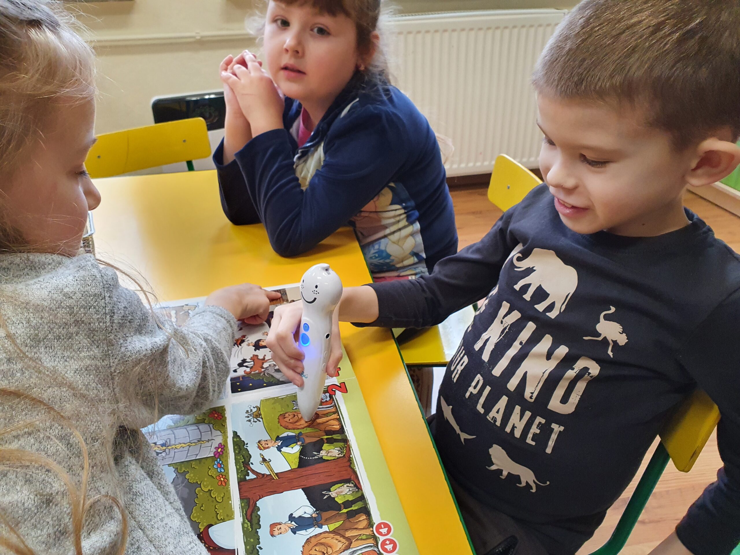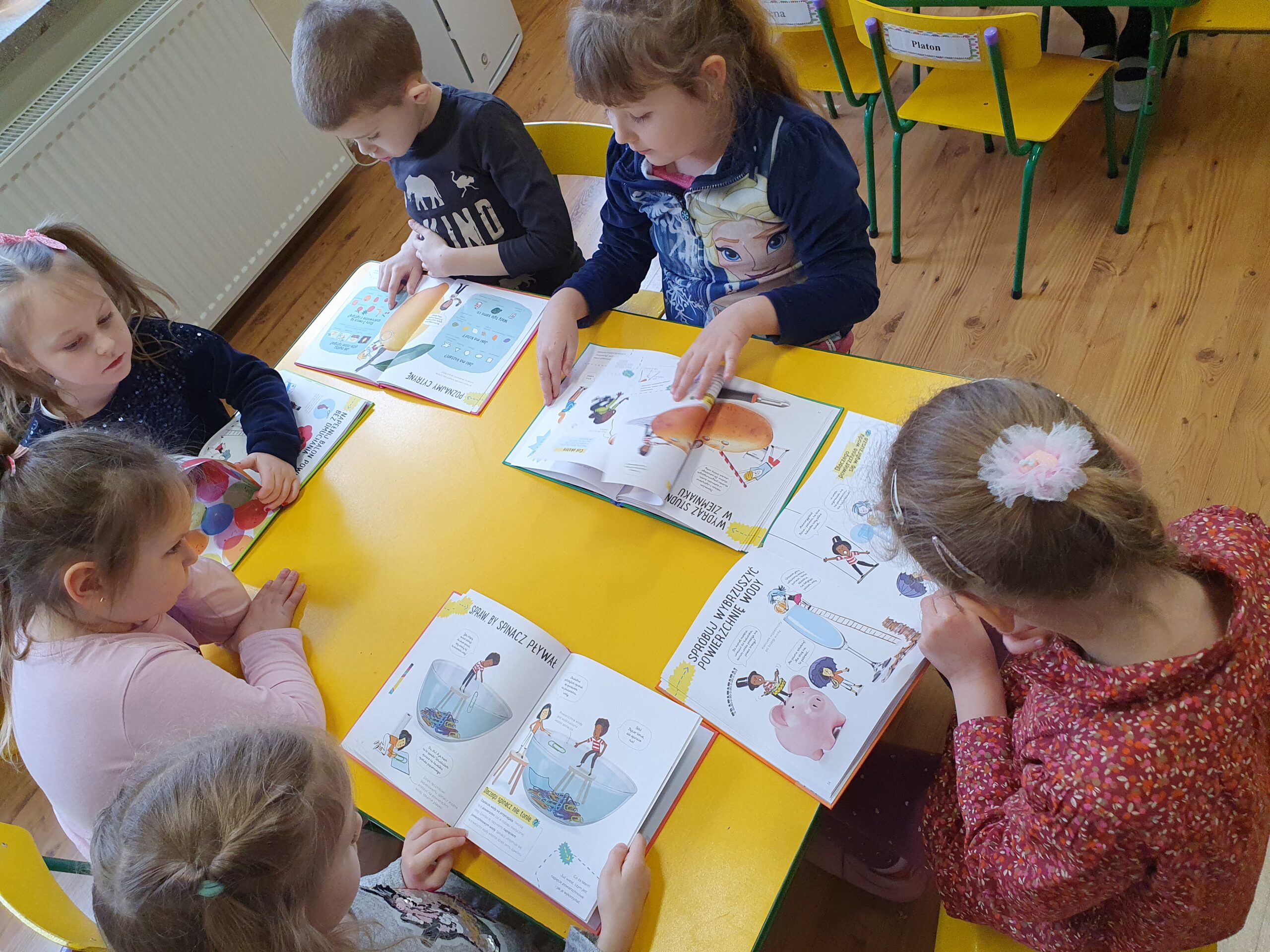 Każda z grup przedszkolnych otrzymała zestawy „Wesoła Nauka” wraz z dodatkowymi książkami z serii „Czytaj z Albikiem”, które oferują naukę z interaktywnym piórem. Zakupiono także książki z cyklu „Przygoda z nauką”, na podstawie których zostały wykonane różne eksperymenty, np. z cukrem, cytryną, czy balonem. Przedszkolaki chętnie zaglądają do tych książek, dzięki czemu poszerzają swoją wiedzę oraz zaspokajają ciekawość świata.