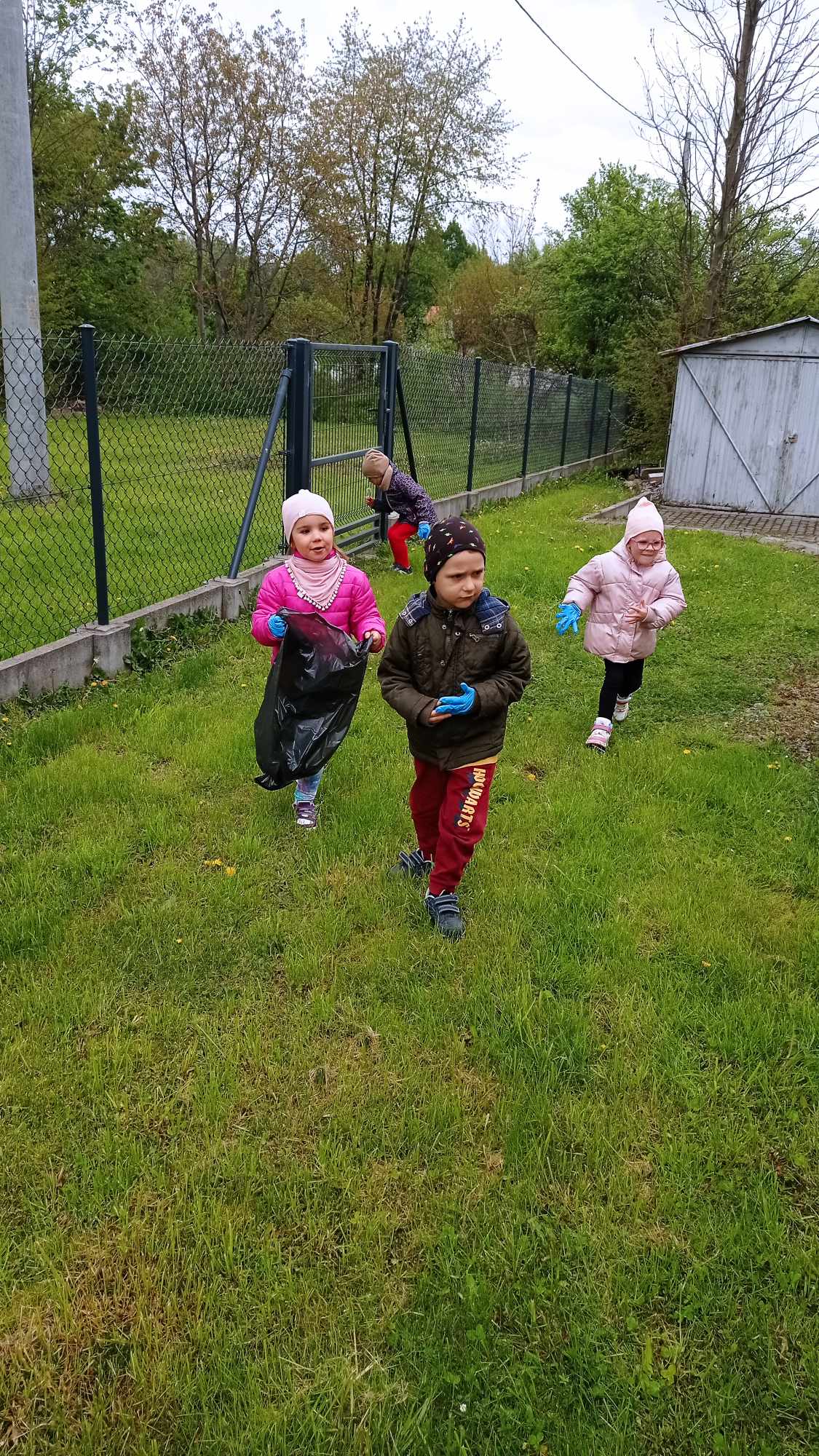 22 kwietnia obchodziliśmy w przedszkolu Dzień Ziemi. Dzieci podczas zajęć dowiedziały się jak dbać o środowisko i otaczającą nas przyrodę. Wspólnie opracowały Kodeks Małego Ekologa, wykonały piękne prace plastyczne zachęcające do dbania o naszą planetę – Ziemię. Grupa 4- latków uporządkowała otoczenie przedszkola – pozbierała śmieci.