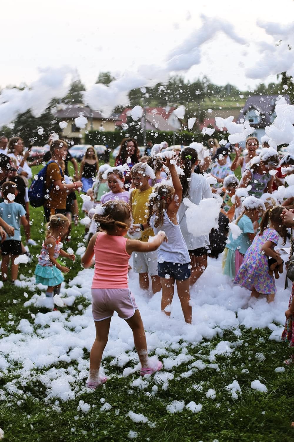 dmuchane zjeżdżalnie, konkurencje sportowe, w tym przeciąganie liny, bieg w alkogoglach oraz piana party