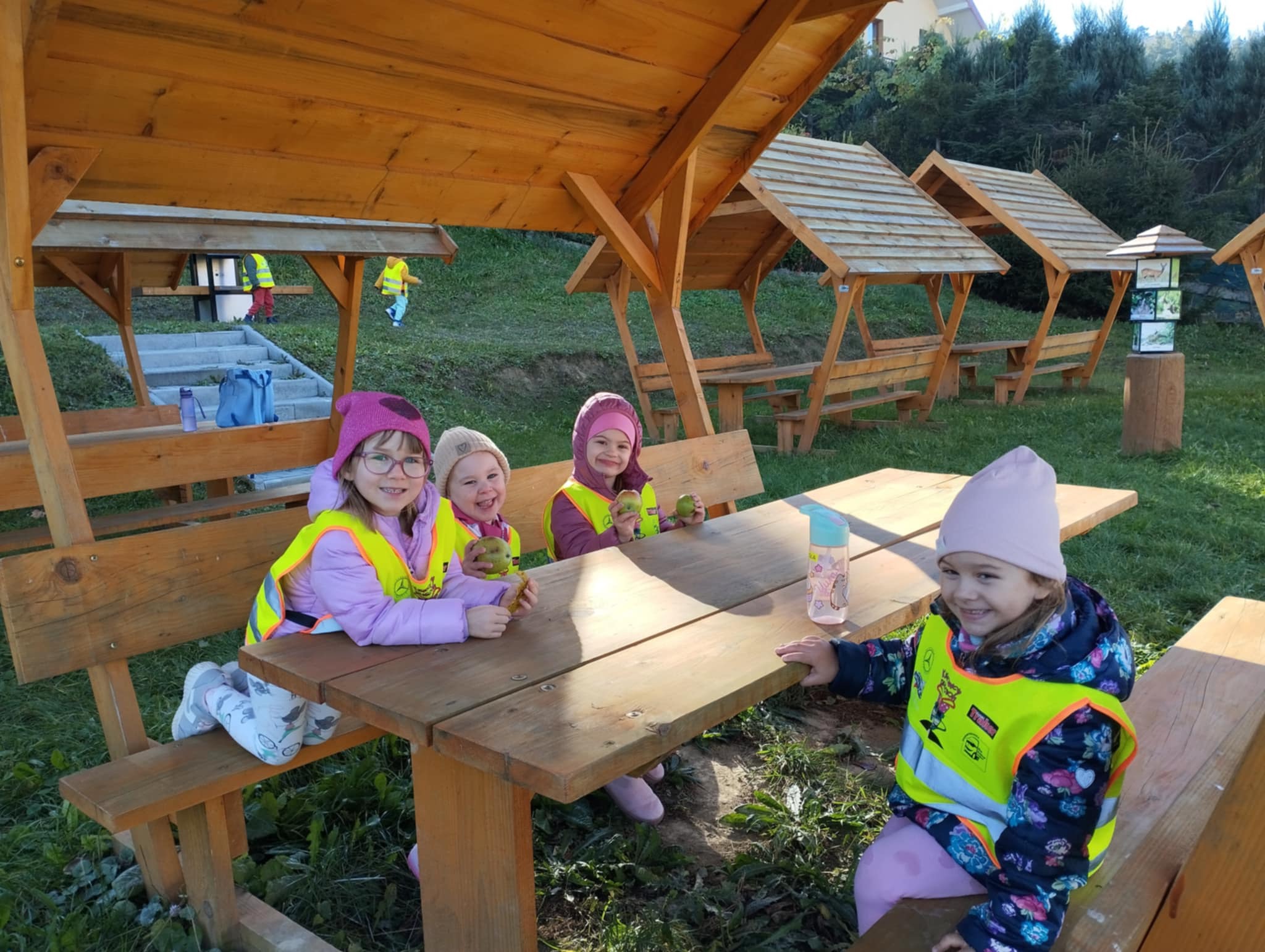 Korzystając z pięknej pogody, przedszkolaki z Iwonicza- Zdroju często wybierają się na jesienne wycieczki. W naszym pięknym uzdrowisku nie brakuje miejsc do miłego odpoczynku na świeżym powietrzu. Dzieci spacerują alejkami, odwiedzają znane miejsca, bawią się w lesie i obserwują zmiany zachodzące w przyrodzie jesienią. Mają też możliwość zjedzenia kiełbaski z grilla.