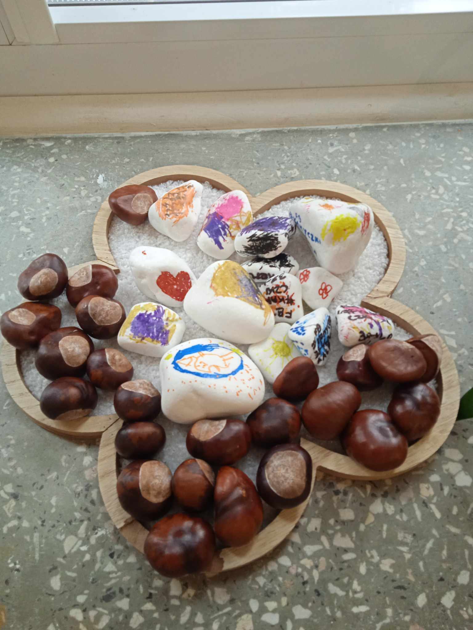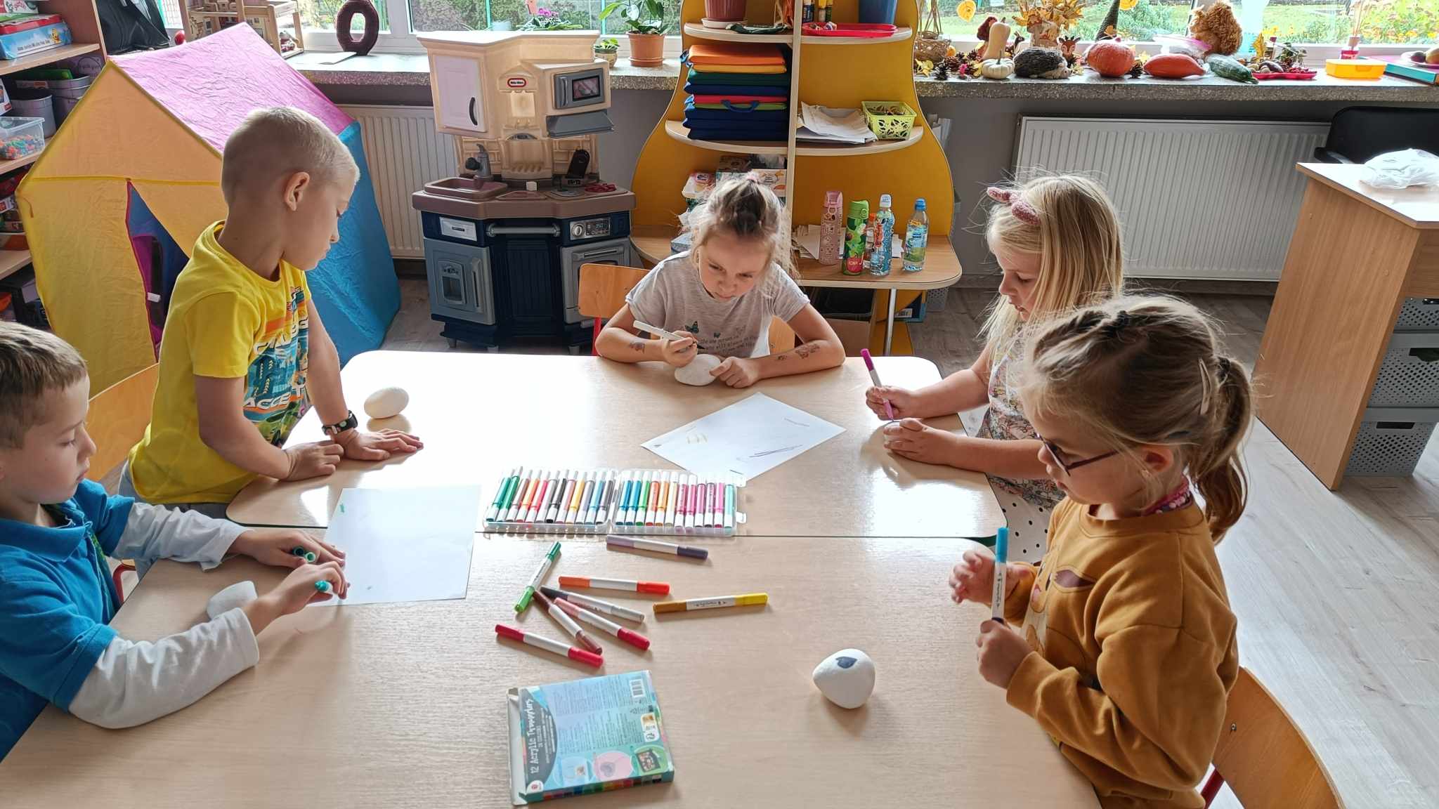 W ramach projektu grupy zrealizowały do tej pory dwa zadania: malowanie kamieni oraz zabawy liśćmi