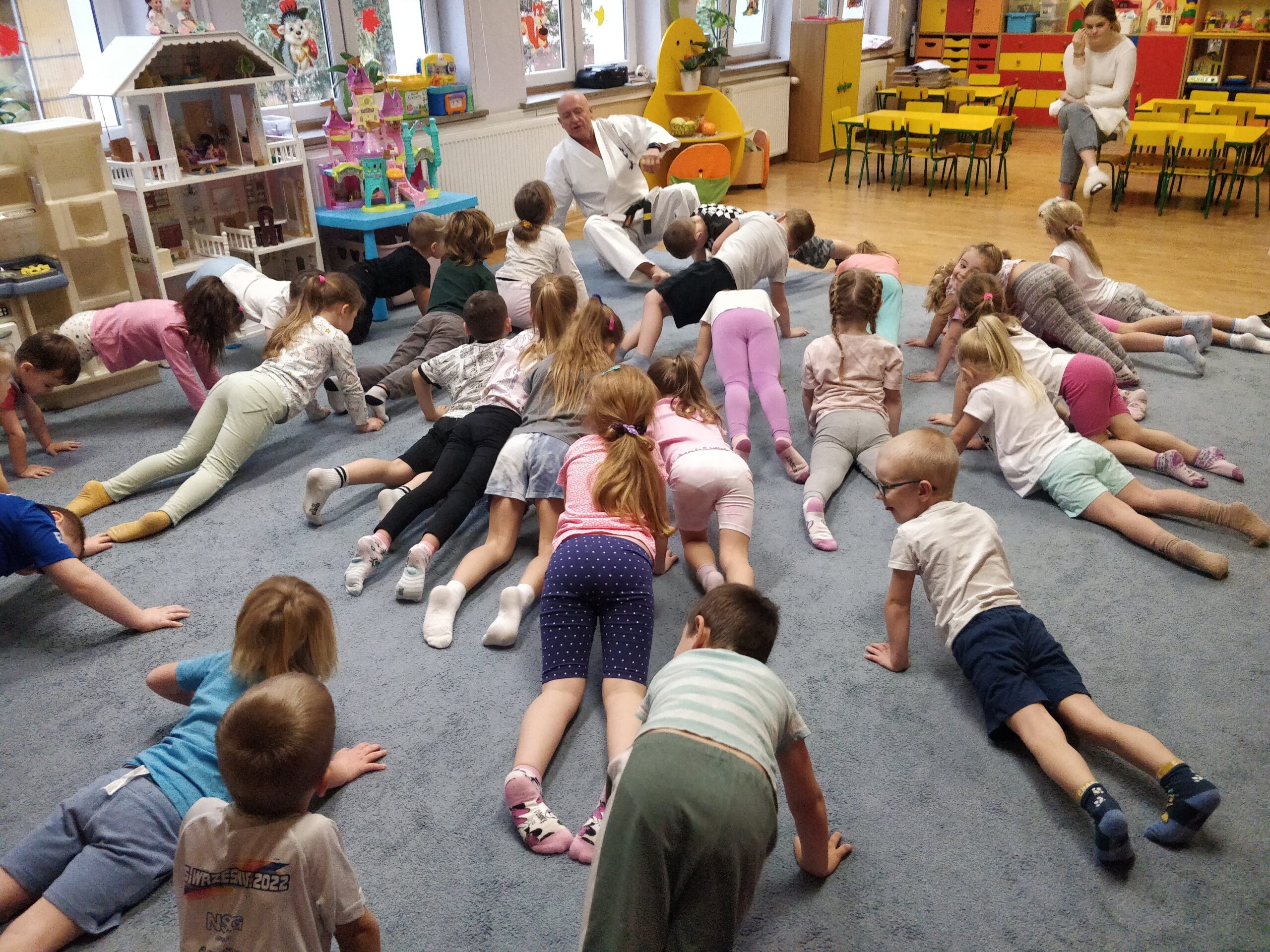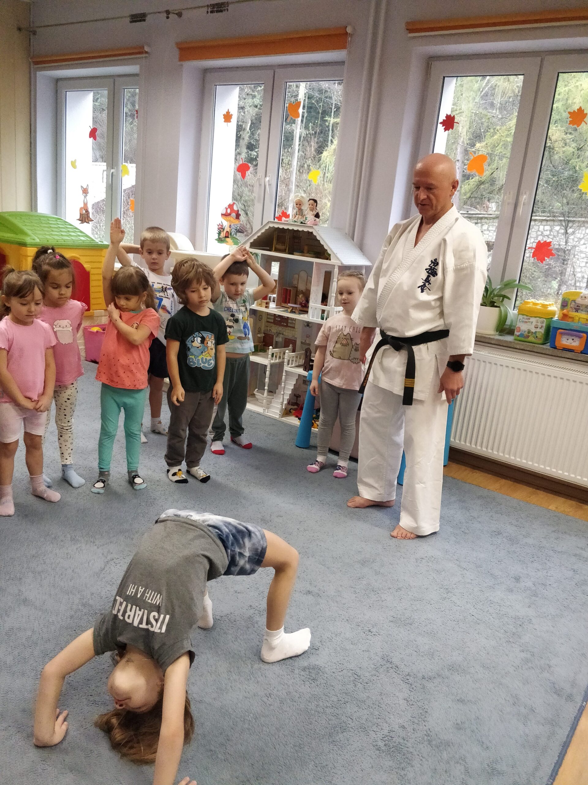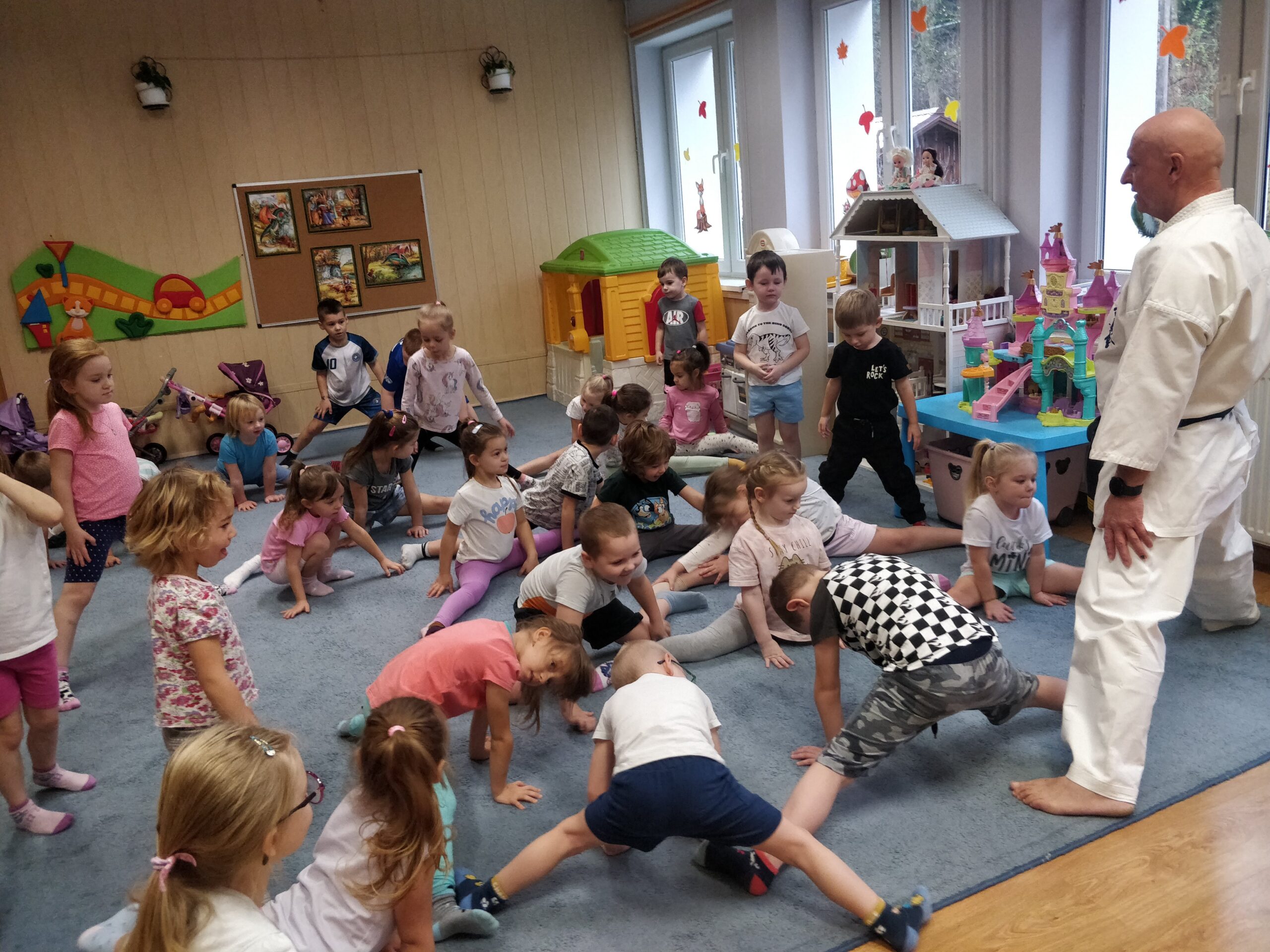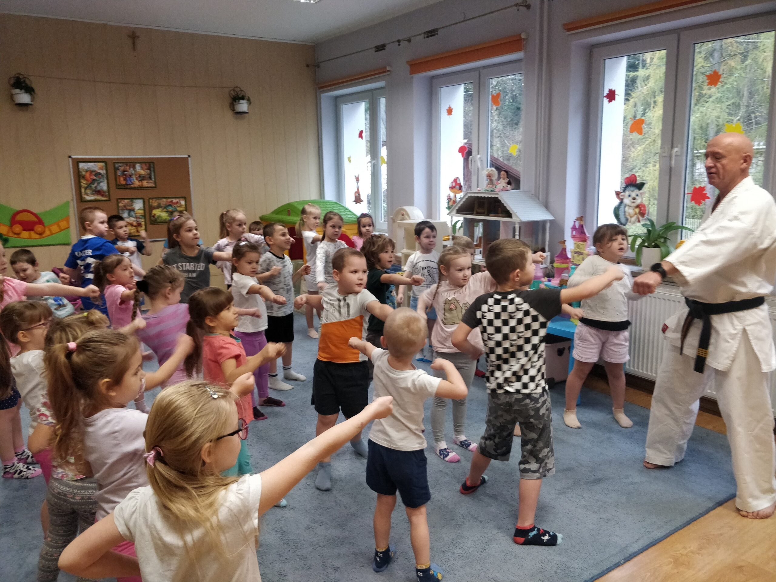 W przedszkolu w Iwoniczu-Zdroju dbamy o fizyczny rozwój dzieci, dlatego w ramach akcji „Przedszkolak ma moc” przeprowadzone zostały zajęcia sportowe z elementami Karate Kyokushin. Trening prowadził Sensei Wojciech Świstak. Zajęcia karate opierały się przede wszystkim na treningu ogólnorozwojowym, kształtującym zdolności koordynacyjne, zwinnościowe oraz gibkościowe. Uczestnicy treningu, nie tylko wspaniale się bawili, ale także poznali podstawowe techniki karate, rozwijające potencjał motoryczny i kształtujące charakter. Dziękujemy panu Wojtkowi za przeprowadzone zajęcia i zapraszamy ponownie.