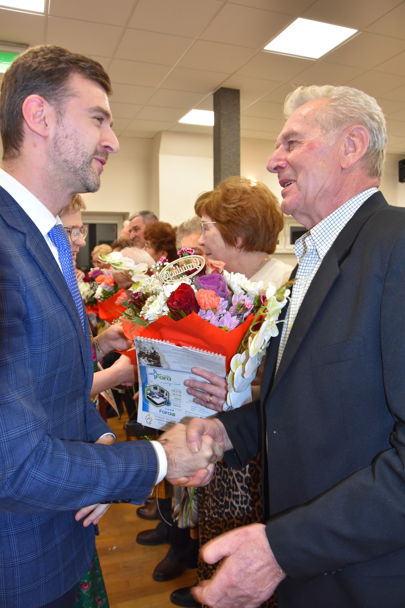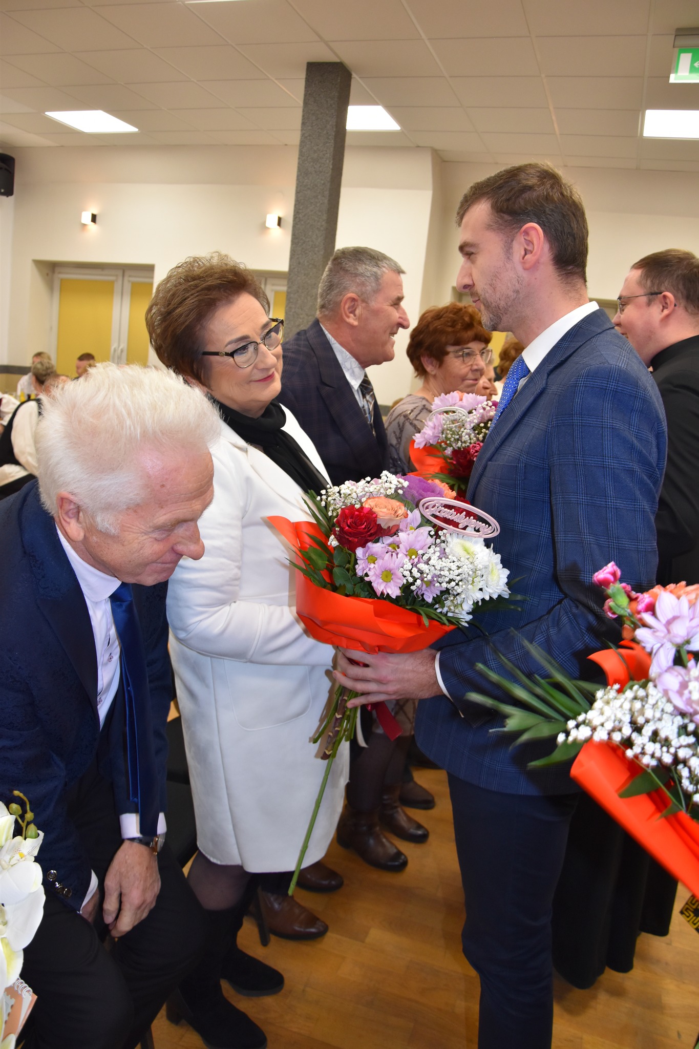Specjalne życzenia dla złotych par złożyli przedstawiciele gminy: Burmistrz Gminy