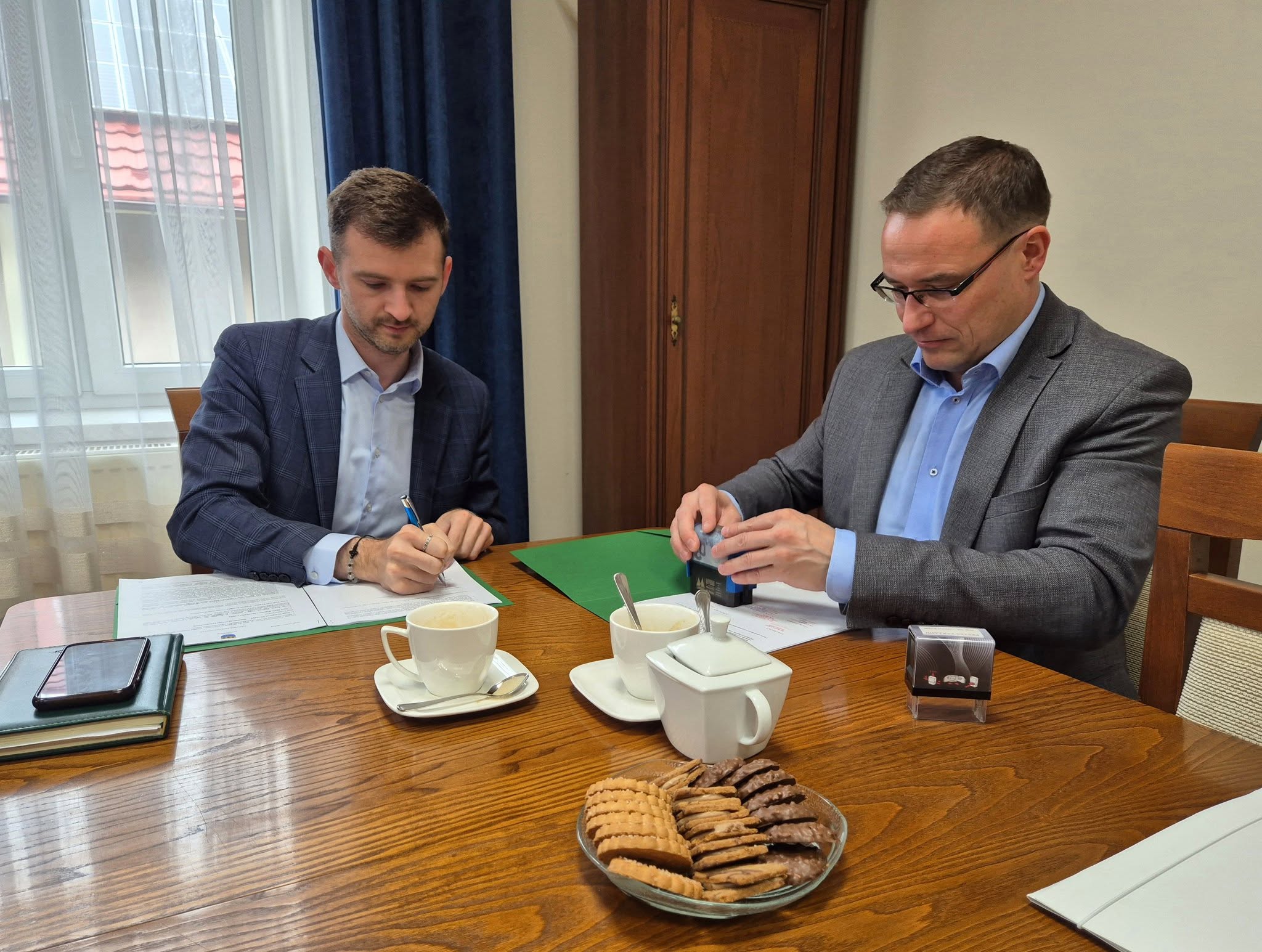 Grzegorz Nieradka podpisał umowę z Panem Andrzejem Zygarem – Prezesem Zarządu Rejonu Budowy Dróg i Mostów w Krośnie Sp. z o.o.