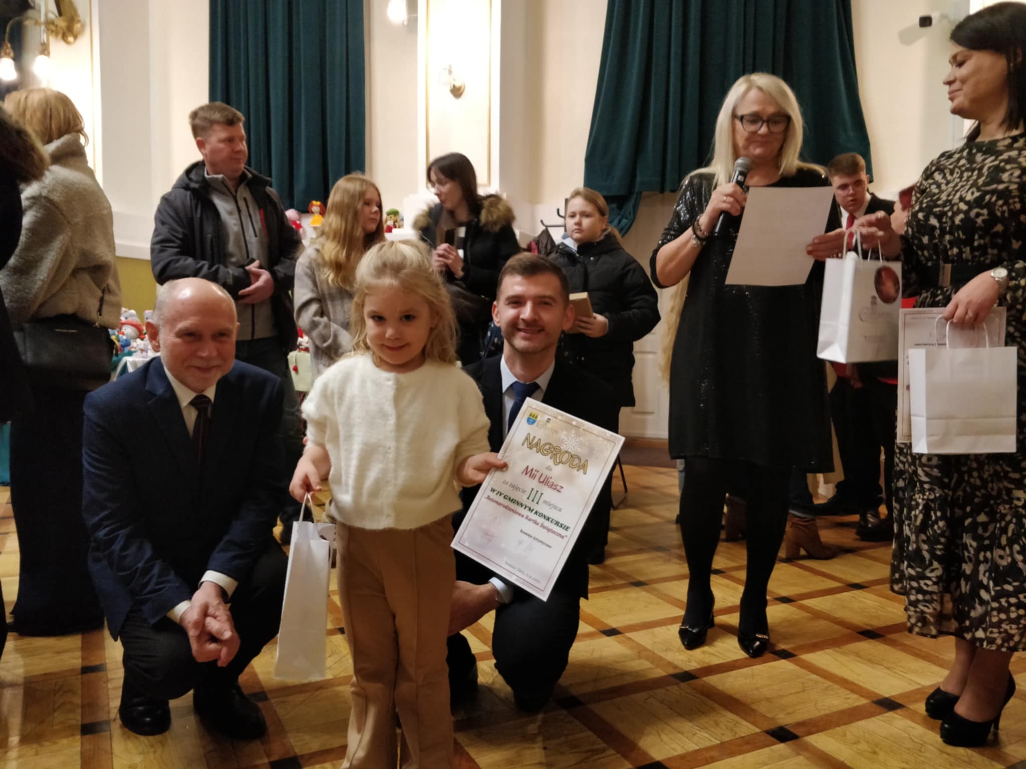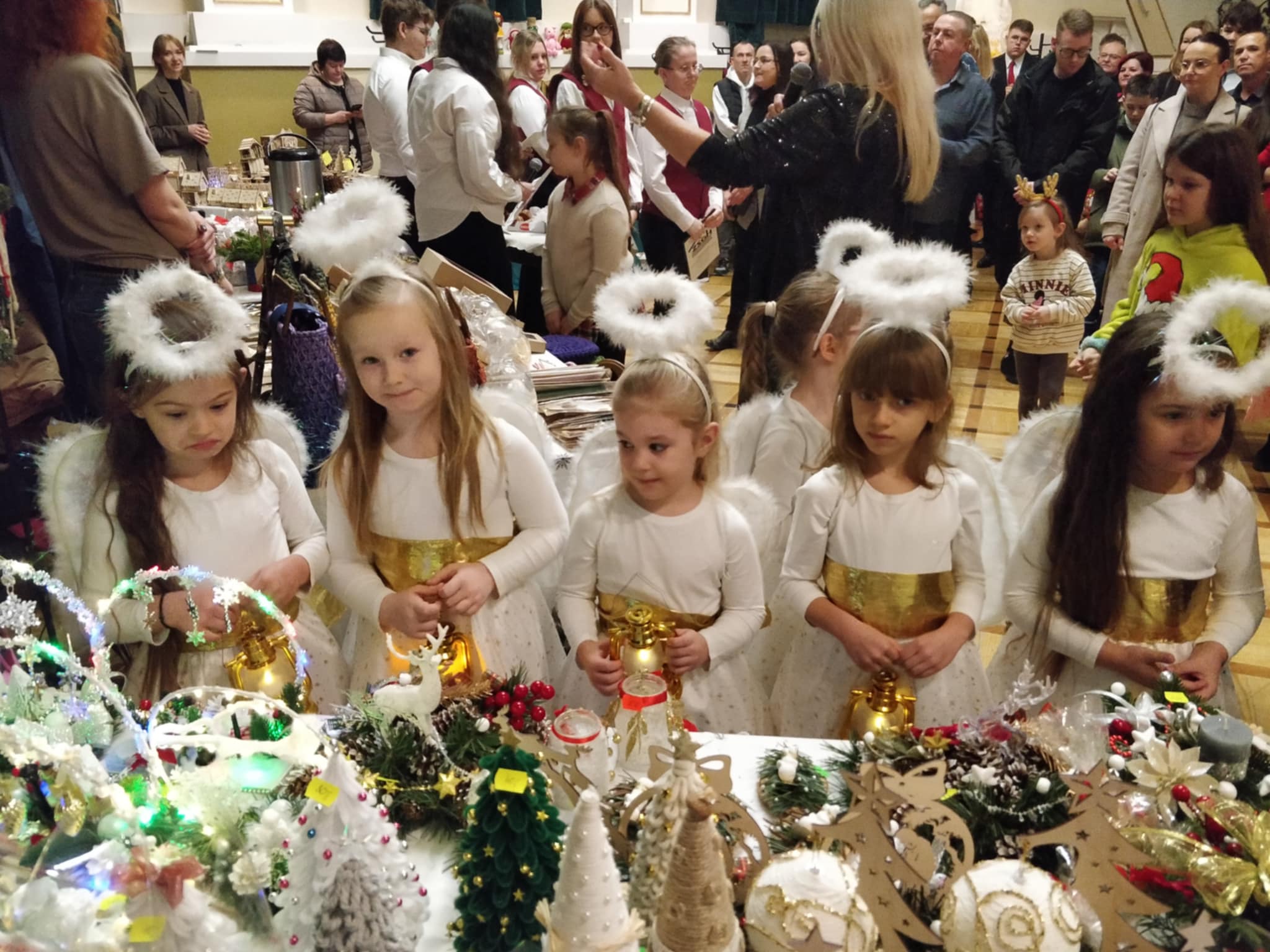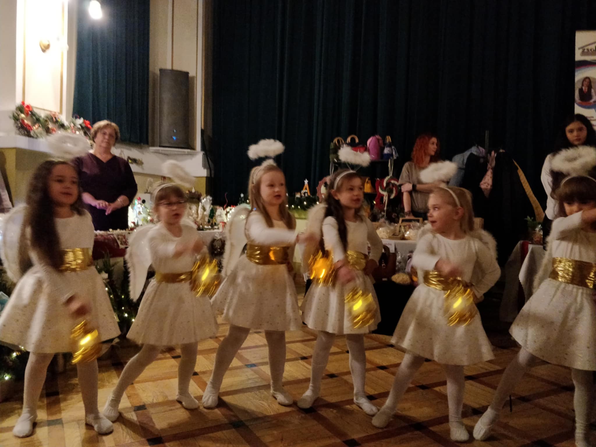 Podczas kiermaszu można było podziwiać występ taneczny dziewczynek – aniołków z naszego przedszkola. Jednym z punktów wydarzenia było uroczyste wręczenie nagród w konkursie na kartkę bożonarodzeniową