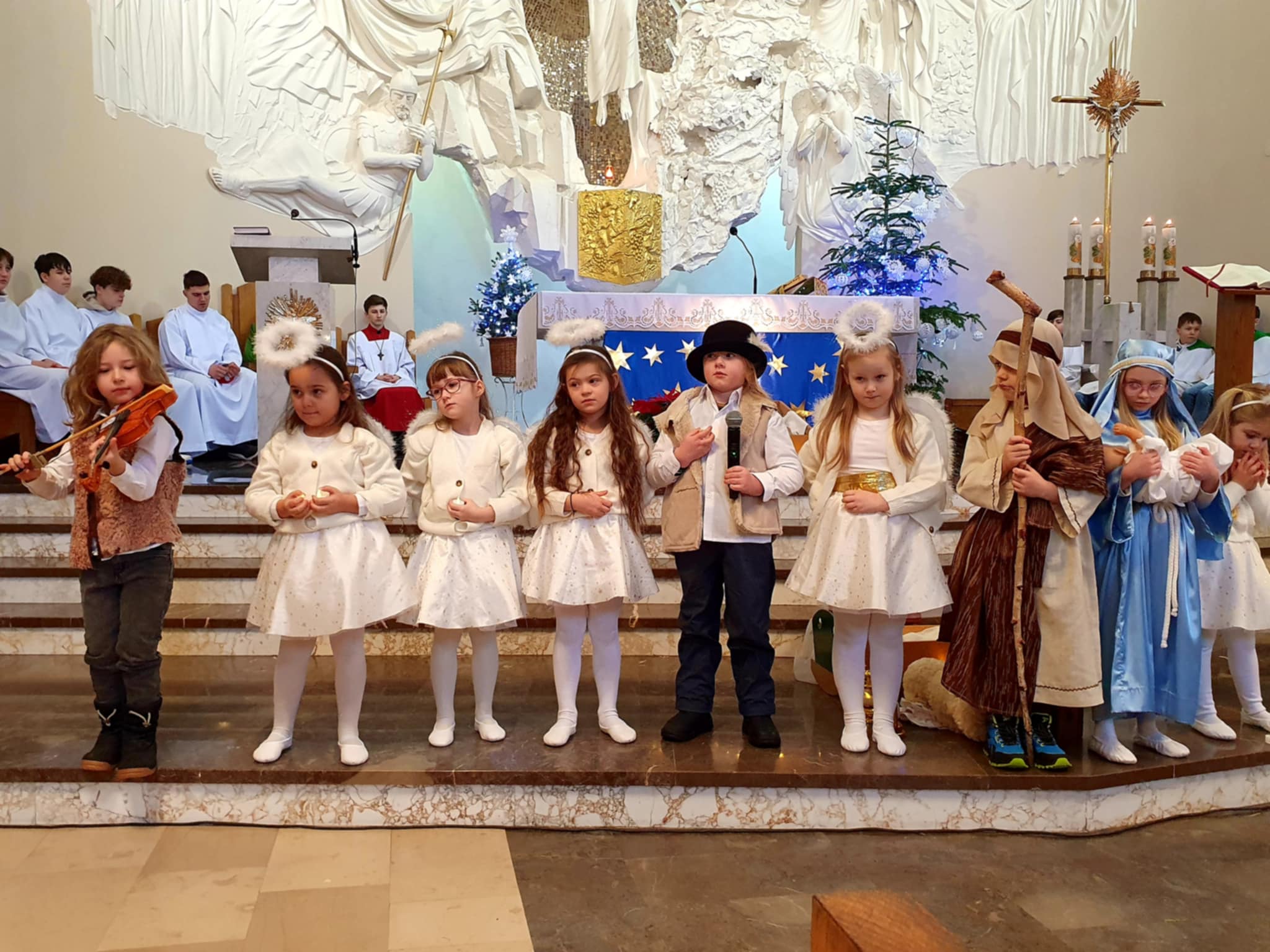 Odświętne stroje, dziecięca prostota oraz piękna oprawa muzyczna sprawiły, że występ stworzył niezwykle wzruszającą atmosferę i na długo pozostanie w pamięci uczestników.